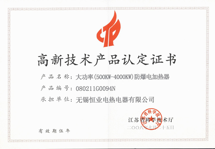 防爆電加熱器獲高新技術產品