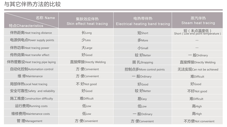 ◆ 適應(yīng)性強,應(yīng)用范圍廣適應(yīng)所有長、中、短距離金屬輸液管道的伴熱和加熱,適用于管道的不同敷設(shè)方式和任何場所,如:地下直埋、水下、地面架空;適用野外或礦場、工廠、易燃易爆場所。